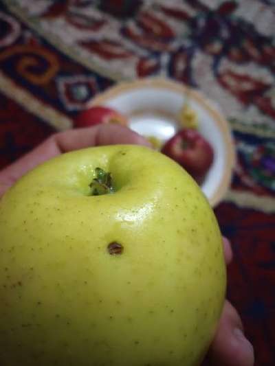 مرجبا، أظن أنها أعراض حشرة الكاربوكبس Carpocapse de la Pomme هل يمكنك أن تقسم التفاحة و تفحص داخلها