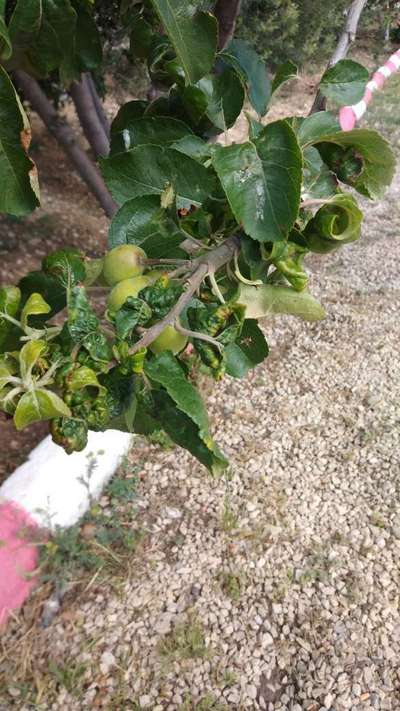 هذي أورق شجرة تفاح تصوير يوم الجمعة درجه الحراره 17 مع العلم ان شجرة مثمرة و مزهرة في هذه الوقت