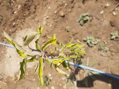 شجر تفاح الورق الجديد بيكون اصفر وعليه حشرة سوداء مثل النقط ماهي المشكلة هل حشرة ام نقص بالعناصر الغذائية وماهو الحل وجزاكم الله خيرا