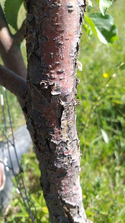 هذه الصورة تخص شجرة التفاح اذ أن الغصن يتقشر ما السبب و ما العلاج ؟