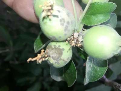 سبب هذه التبقعات هي دودة صغيرة الرجاء افادتي بالمبيد الازم للقضاء عليها علما أنها شجرة التفاح