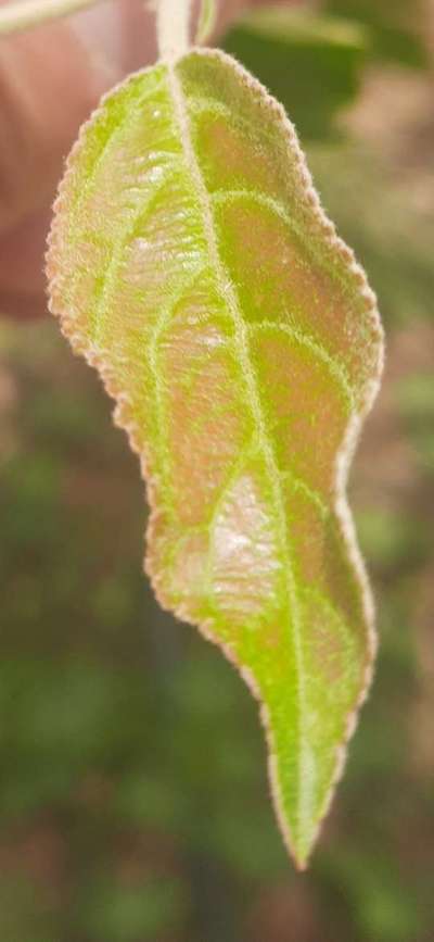 هذي أورق شجرة تفاح تصوير يوم الجمعة درجه الحراره 17 مع العلم ان شجرة مثمرة و مزهرة في هذه الوقت