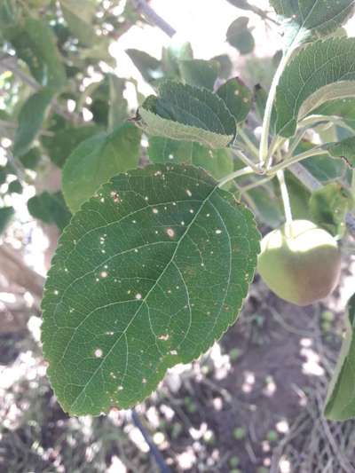 سبب هذه التبقعات هي دودة صغيرة الرجاء افادتي بالمبيد الازم للقضاء عليها علما أنها شجرة التفاح