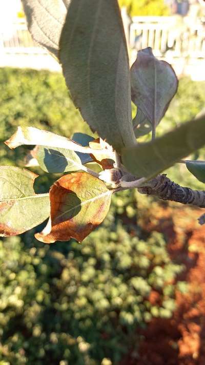 هذي أورق شجرة تفاح تصوير يوم الجمعة درجه الحراره 17 مع العلم ان شجرة مثمرة و مزهرة في هذه الوقت