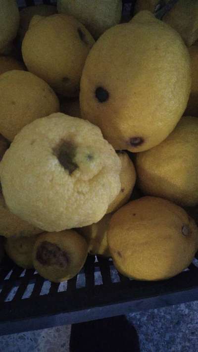 ما سبب هذه البقع السوداء، بقع على اسفل قشر الثمرة، وبين القشرة وقالب الحامض.