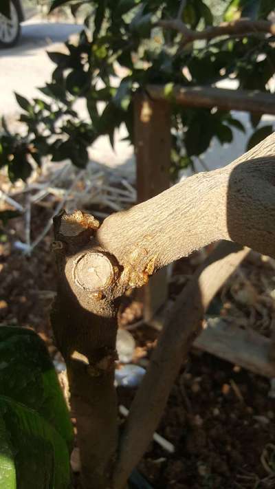 خروج مادة صمغية من شجرة البرتقال من عند العقد