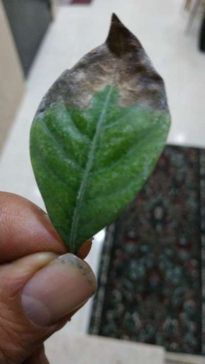 هذه نبات زينه إسمها لاجاردينا في أطراف الورقه يحدث نشفان وكذلك يوجد كذلك في ورده الفل