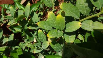 نهايات الأوراق اصفرار . وتلتف الاوراق الجديدة