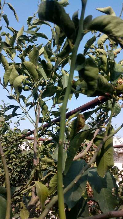 شجرة لالنكي (يوسفي) سقوط الاوراق الغضة والكبيرة ..تم مكافحتها قبل ايام بمبيد حشري لوجود يرقات حشرة