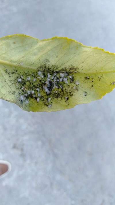 لون الاوراق اصفر ووجود ماده سوداء على الاوراق وموت النهاية للقمم الناميه