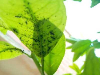 ظهور حشرات سوداء في الجهة الخلفية للأوراق بالإضافة إلى نمل على الأغضان