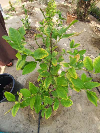 هذه شجرة حمضيات ليمون السؤال الاحظ معظم شجر الليمون اللي عندي هو بهذه الصورة مالمشكلة في الشجرة هل تفتقر الى احد العناصر هل تحتاج الى معالجة معينه تروى مرتين باليوم كل ١٢ ساعة مرة الشمس تجيها في حدود٦ ساعات