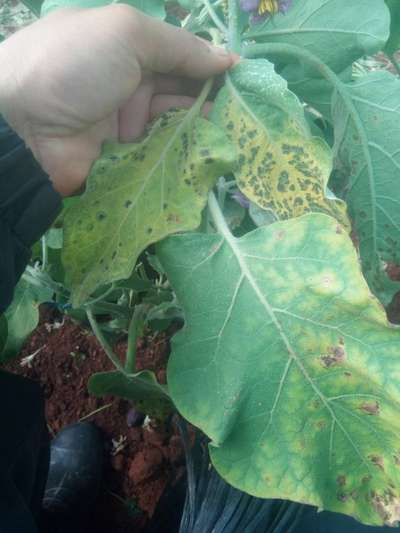السلام عليكم Youcef Laidani أظنه المرض الفطري ساركوزبوريوز، اظغط على الرابط التالي Cercosporiose des feuilles de l'Aubergine