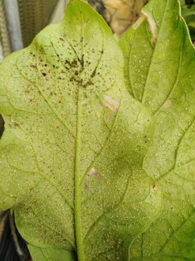 أخي صورة أوضح للجهة الامامية للنبتة اظن هناك حشرة الذباب صانعات الانفاق