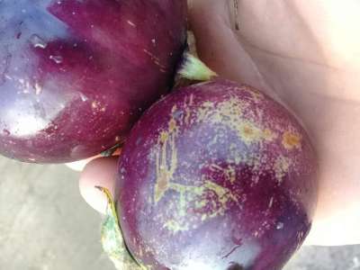 هذا بازنجان عمر كبير وتظهر الاصابه عباره عن اصفرار القمه الناميه مع ظهور بقع بنيه ضغيره علي الاوراق