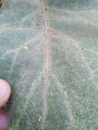 ظهرت نفس الاعراض على اللوبياء بشكل نمش ابيض وانتقلت الى الباذنجان والبندورة
