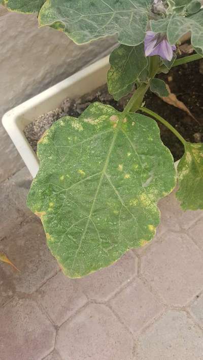 لسلام عليكم لوسمحتوا لدي مشكلة في اوراق الباذنجان يتحول لونها الى الأصفر الباهت كما انه الزهرة لا تتحول الى ثمرة