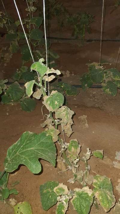 اصفرار الاوراق واحتراقها في اغلب اشجار الخيار وموتها الرجاء من الجميع اعطائي الحل وشكرا لكم