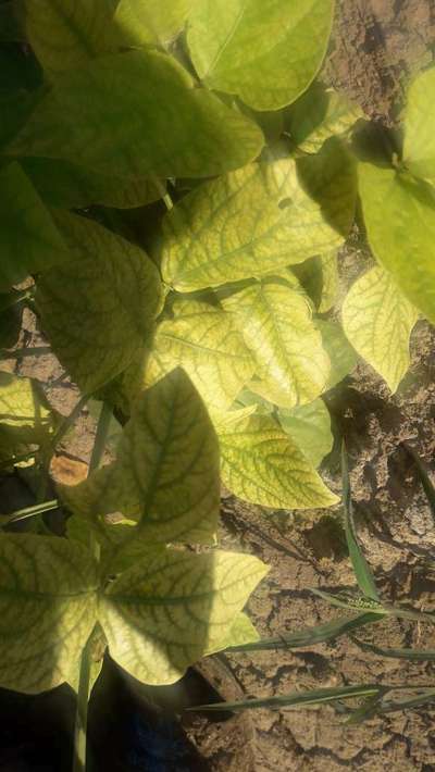 هناك اصفرار اوراق اللوبيا الخضراء في بعض الاوراق