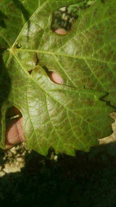 سلام عليكم تضهر بقع حنيت ألون مائله الى جوزي على أوراق العنب