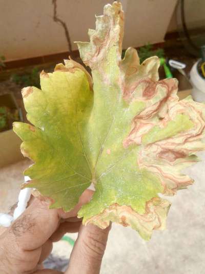 يا جماعه الخير دا بسبب ارتفاع درجات الحراره اثرت ع جميع النباتات للي مكنش مجهز حاله عليك بانتظام الري والتسميد ورش عناصر صغرى مع طحالب وانا انصحك بمركب اسمه ماتيو اسباني 🇪🇸 هيخفف معاك حروق الورق و يغذي العنب