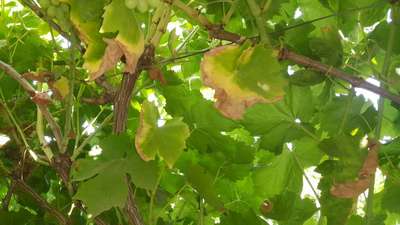 سببه مش نقص فى اى عنصر بس الحكايه فى الكتمه التهويه الجيده هى الحل يجب نزع اخر 3 ورقات من الاخر من كل طراح عنب للتهويه