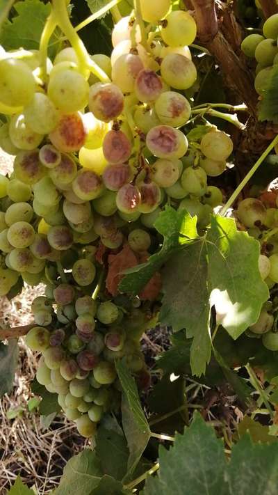 بعض حبات العنقود ملسوعه ومكرمشه