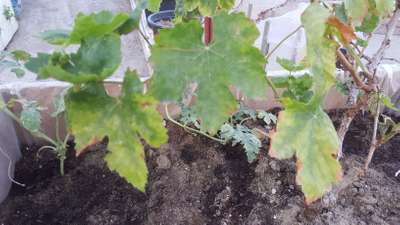 بقع حمراء و صفراء في أوراق العنب