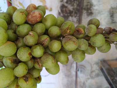 السلام عليكم المشكلة لا هي مرض فسيولوجى ولا هى اصابة حشرية الاصابه هنا ليه حاجتين يا اما زياة رش حمض الجبريلك ودى ظاهرة يتحدث ف عنب الفليم سيدلس او البرايم ولااعرض تبعه تبدا من اسفل الحبه العنب الحاجة التانيه ودى من اكثر الحاجات الشائعه ف العنب زيادة التسميد البوتاسيوم
