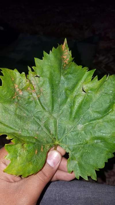 ضهور بقع بنيه في اوراق العنب تشبه التيبس وندره في الثمار