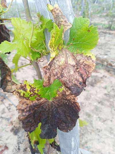 بعد التحية هل من علاج يظهر فى أوراق العنب تجعد .. وأحتراق الأوراق والظهور باللون البني؟