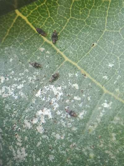 تشخيصك للاصابة 100% ، الاصابة بتربس Thrips ويمكن ايضا مشاهدة الحشرة على سطح الورقة بشكل واضح .