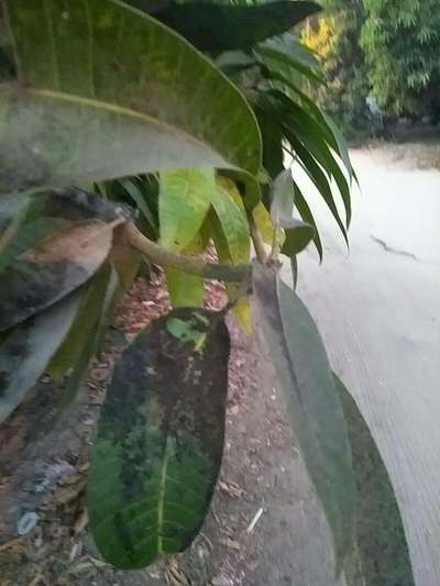 نبات المانجو أوراقه تغيرت الي اللون البني بينما العروق الداخلية مازالت خضرا