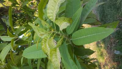 السلام عليكم يا اخوة يا كرام. لو تكرمتم ماهي مشكلة هذي المانجو وما هو العلاج بدأ التيبس في الاوراق القديمه ثم بدأ ينتشر في الاوراق الحديثة بالاضافه الي توقف نمو الشجرة بشكل عام جزيتم خيرا