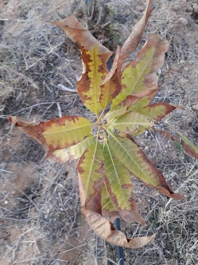 تغير لون ورق المانجو الي اللون البني.