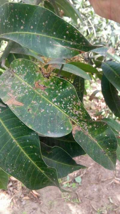 Hi ابن العمده ابو العمده your mango is affected by Red scale .Click on the green link to get more informations and control measures on the plantix libary.