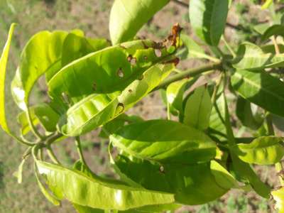 اوراق الشجره اطرافها محروقه ومخرمه وسط الورقه