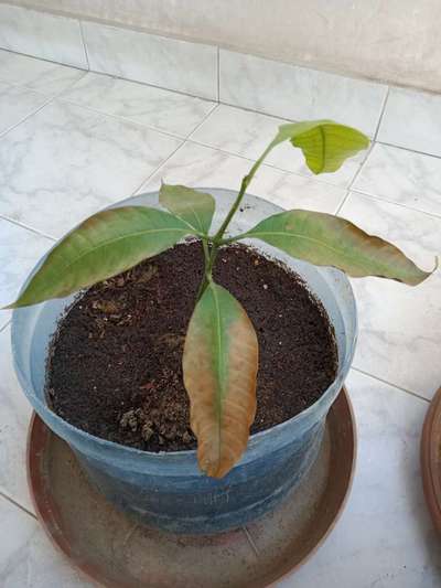 ظهور بقع على ورق شتلة المانجو ولا يوجد تطور في النمو