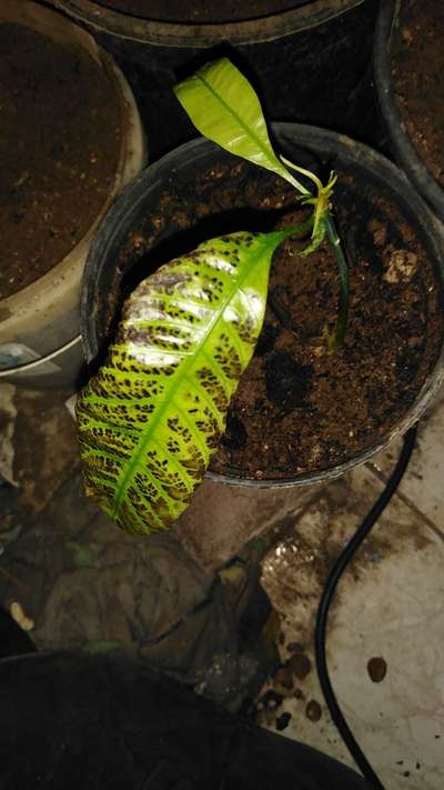 ظهور بقع على ورق شتلة المانجو ولا يوجد تطور في النمو