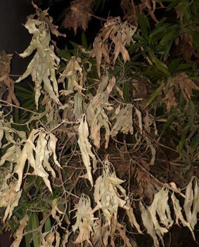 ماسبب موت اوراق شجرة المانجو بهذا الشكل:(؟