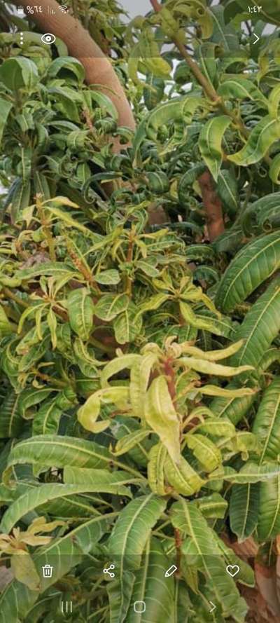 السلام عليكم محمد محمد اعتقد هناك نقص بالاسمدة ،خاصة الحديد ،اضغط على الرابط التالي : نقص الحديد تثبت ان كان هناك حشرات ألمن