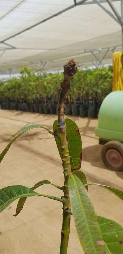 نبات المانجوا عمر ٣ شهور اورقها حدث بها كما في الصوره من اول فصل الشتاء
