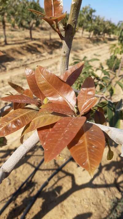 مرحبا Ibrahiem Mahmoud النموات الحديثة فى المانحو يكون لونها بني فاتح و مع التسميد المتوازن تكتسب اللون الأخضر بالتوفيق المنتدى دايما في خدمتك