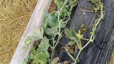 الجو كان ممطر ثم حرر ثم رياح شديدة وانا قفلت المشمع البلاستيك علي البطيخ فتره وبعد كدة بقي بالحاله دي اية الحل افيدوني