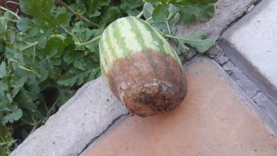 البطيخ لا يحتاج إلى كثرة الري كل اربع ايام مرة وليس غمر زائد بذالك تختنق وتتعفن الجذور اعطها كالسيوم وبورون معا رش على الاوراق قبل النضج ٢٠ يوم اعطها سماد بلدي لزيادة حلاوتها مع تقليل الري