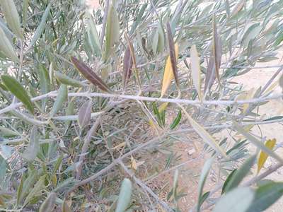 تساقط زهر ثمرة الزيتون من أصل الغصن وكذالك وجود سوسة في الغصن كما هو ظاهر في الصورة