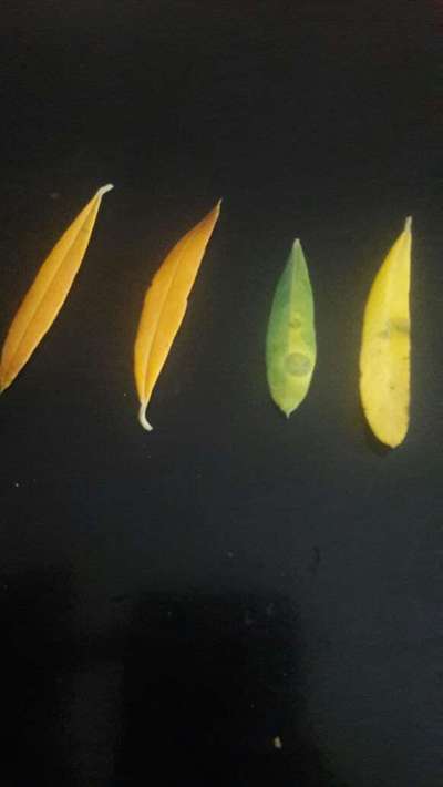 لون الاوراق اخضر واكحل نصف بنصف وتصقط الكثير