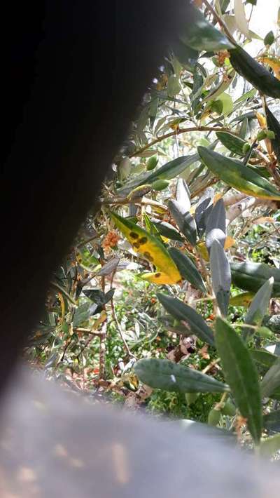 اصفرار في اوراق الزيتون مع بقع باللون البني