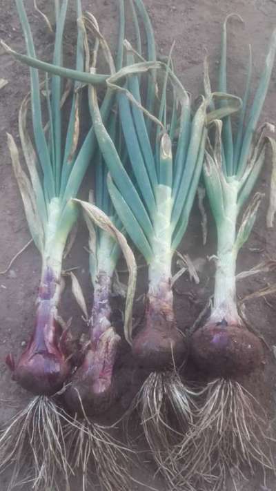 أوراق البصل بها اصفرار في في بعض الجهة