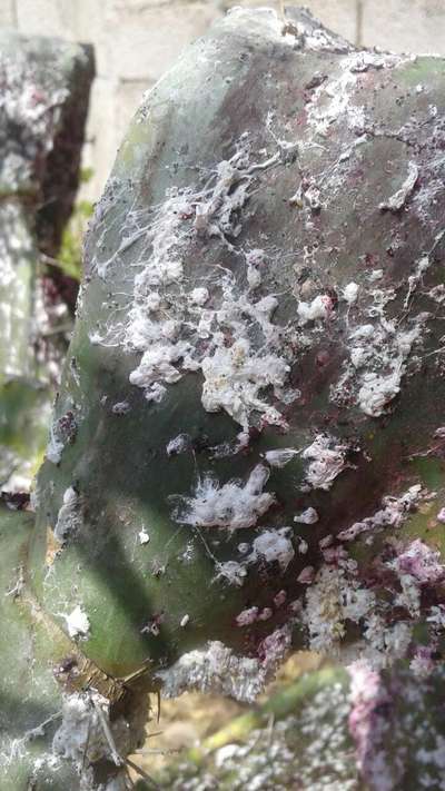 تضهر حشرة ملتفة حول مادة بيضاء وتنتشر على الصبار لتقضي عليه